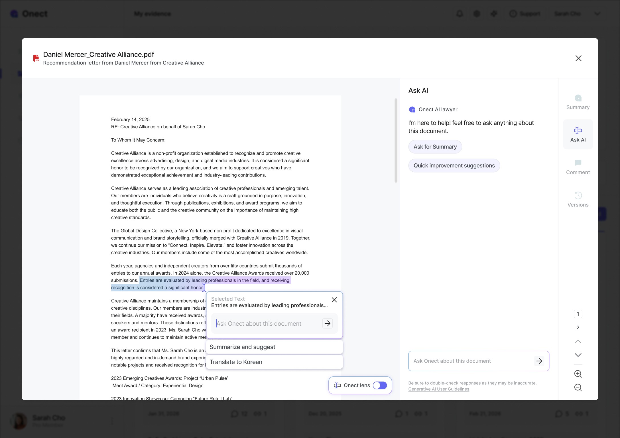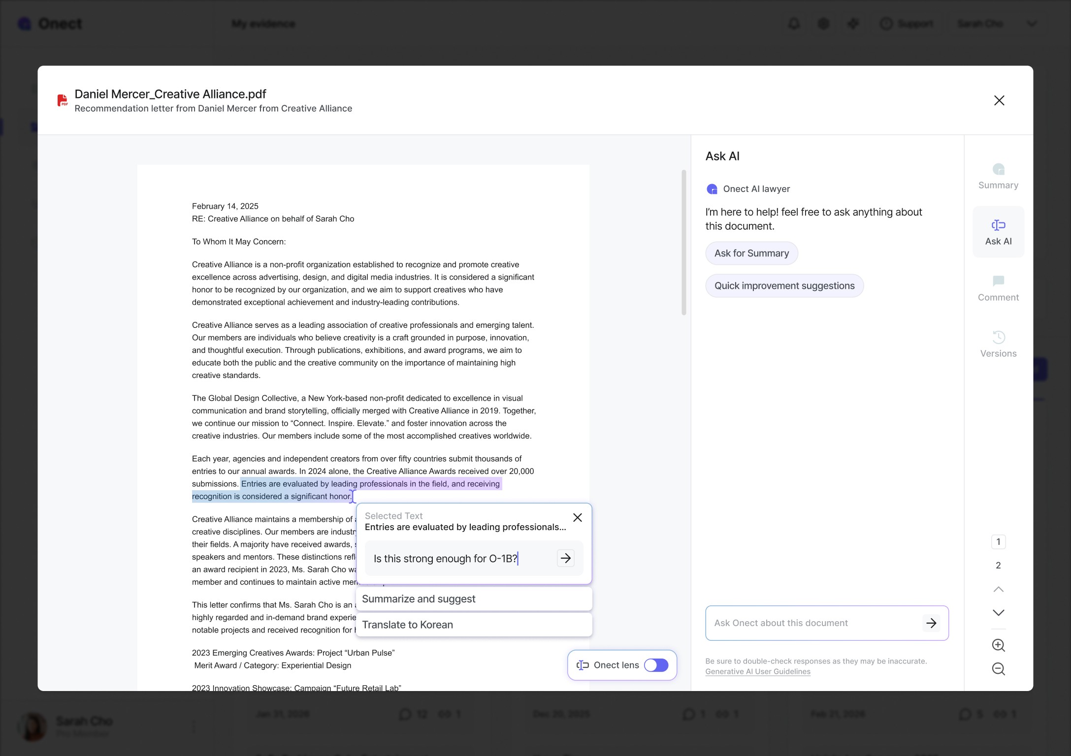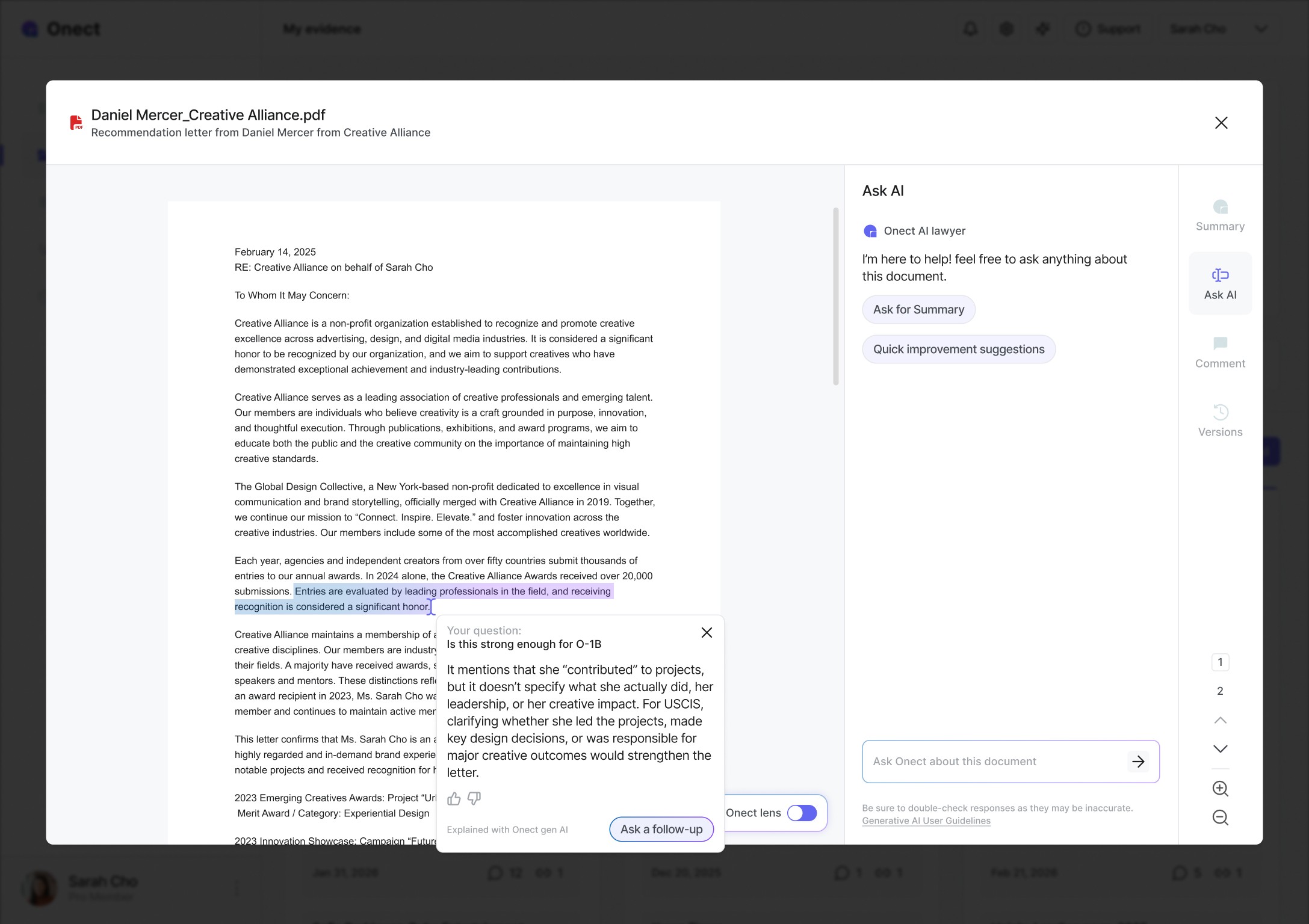 Applicants have no clear roadmap to prove their extraordinary ability, and attorneys are buried in manual document review where errors are inevitable. Nearly 30% of petitions get flagged as a result. Onect bridges that gap, giving professionals the structure to build a compelling case and attorneys the clarity to review one.